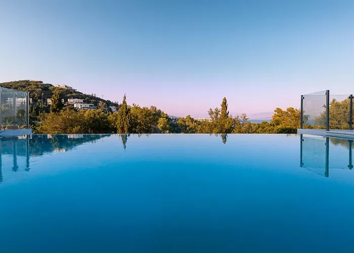 La proprietate există mașini de cafea/ceai, precum și o bucătărie complet utilată. Servind mâncăruri grece, Paradisos este situat la mai puțin 5 minute de mers pe jos de cazarea. Stația de autobuz Dionysos Camping se află, de asemenea, la distanță de mers pe jos de cazarea. Proprietatea are o piscină infinită, precum și posibilitatea de a participa la cursuri de fitness.
